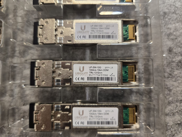 1. UF-SM-10G (Singlemode): 10 Gbit/s (SFP+), bis 10 km Reichweite, LC-Anschluss.